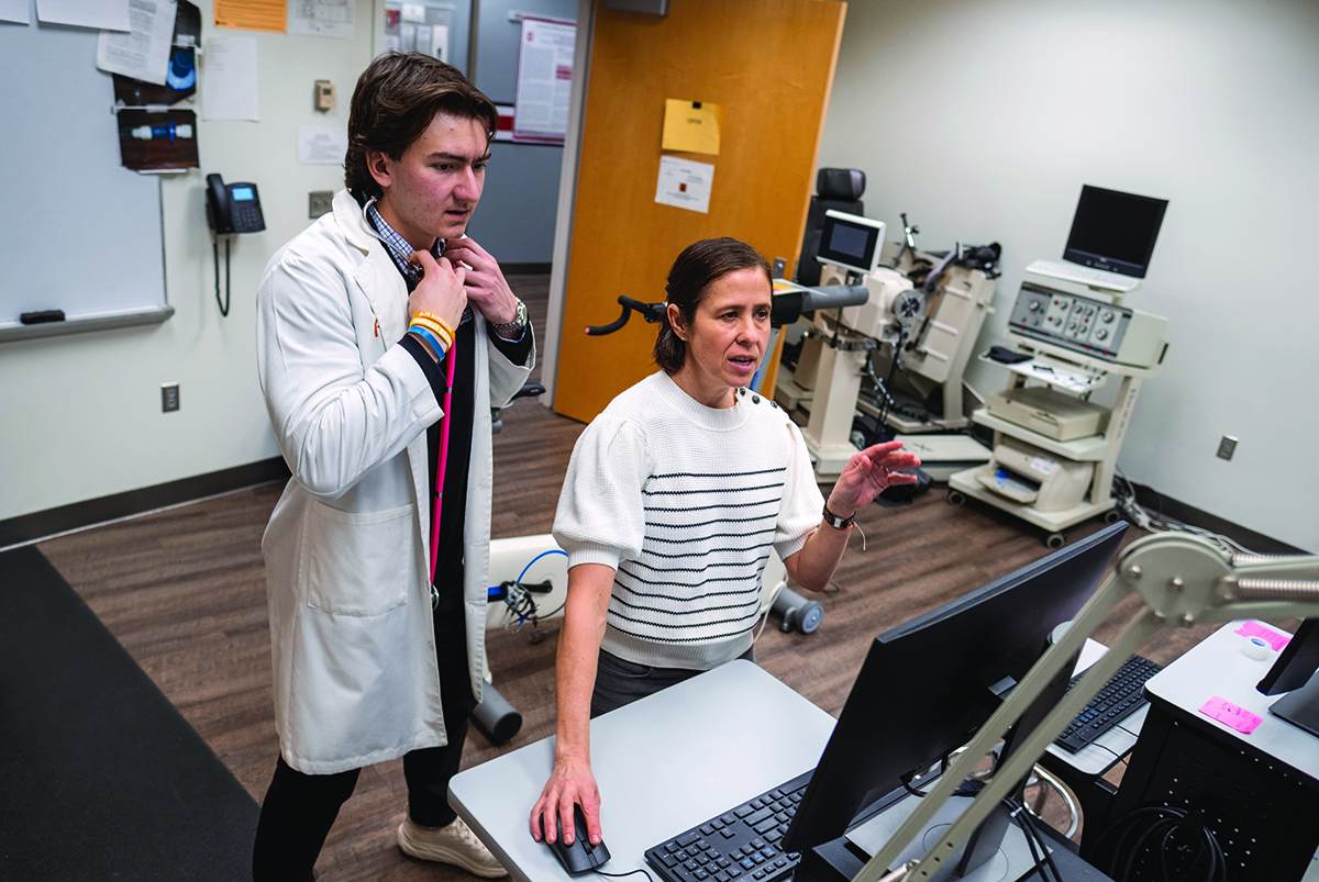 Among the crowd are Focht, John Buford, director of Ohio State’s Department of Physical Therapy, and Swain, who invited everyone she could think of, including her student Julia Grzesik, a junior exercise science major.